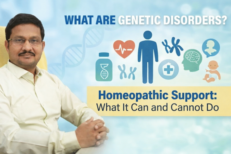 🌿 Homeopathic Support: What It Can and Cannot Do Genetic disorders are health conditions caused by changes in DNA, also called mutations, that affect how the body develops or functions. These disorders may be: “What is a genetic disorder,” “inherited…